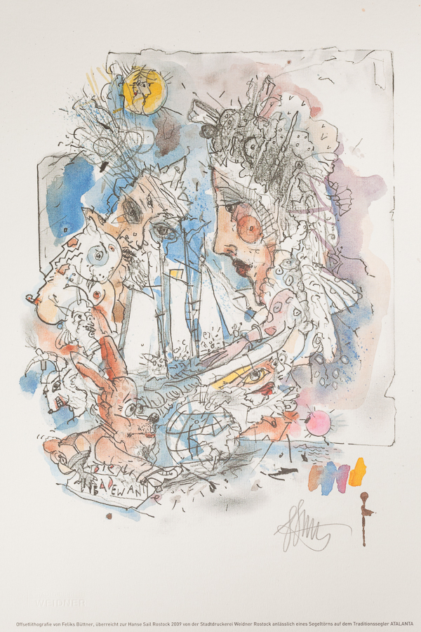 So wie Joachim Ringelnatz im Café Meyer Stammgast war, ist es heute Feliks Büttner im Ringelnatz Warnemünde. Diese tiefe Verbundenheit bringt er malerisch mit eigenen Bildern zum Ausdruck.